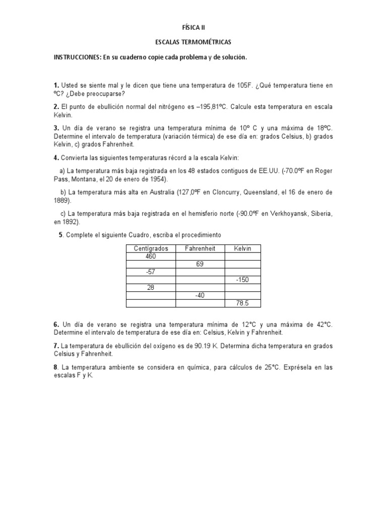Ejercicios Escalas Termometricas Pdf